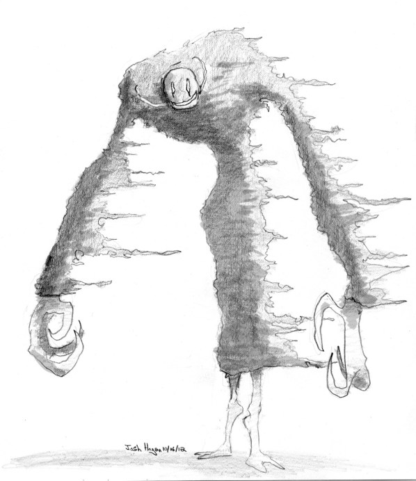 31 Days Of Monsters – Day 6 – I wanted to do a lanky thin guy. That’s all I knew going into this. I started off with a real rough sketch of his silhouette and gave him the circular head with a smiley face. Then I extended the smile onto his torso and I think that worked pretty creepily. From there I have him 3 clawed fingers and decided to put him on his tippy-toes. All in all, a nice creepy look I think. I did enhance the shading a little bit in photoshop, but all in all, this was another quick one. I’m really enjoying the quick sketches so far for these monsters. I think, for the most part, they’re a unique bunch of creatures. We’ll see if I continue to do quick sketches or if I move onto more finished pieces as these continue.