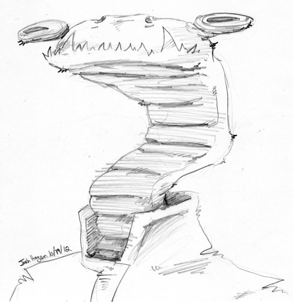 31 Days Of Monsters – Day 19 – For today’s monster, I came up with the idea of tapeworm-head alien guy. Another sketch in pencil. Went really quick today – under 10 minutes.